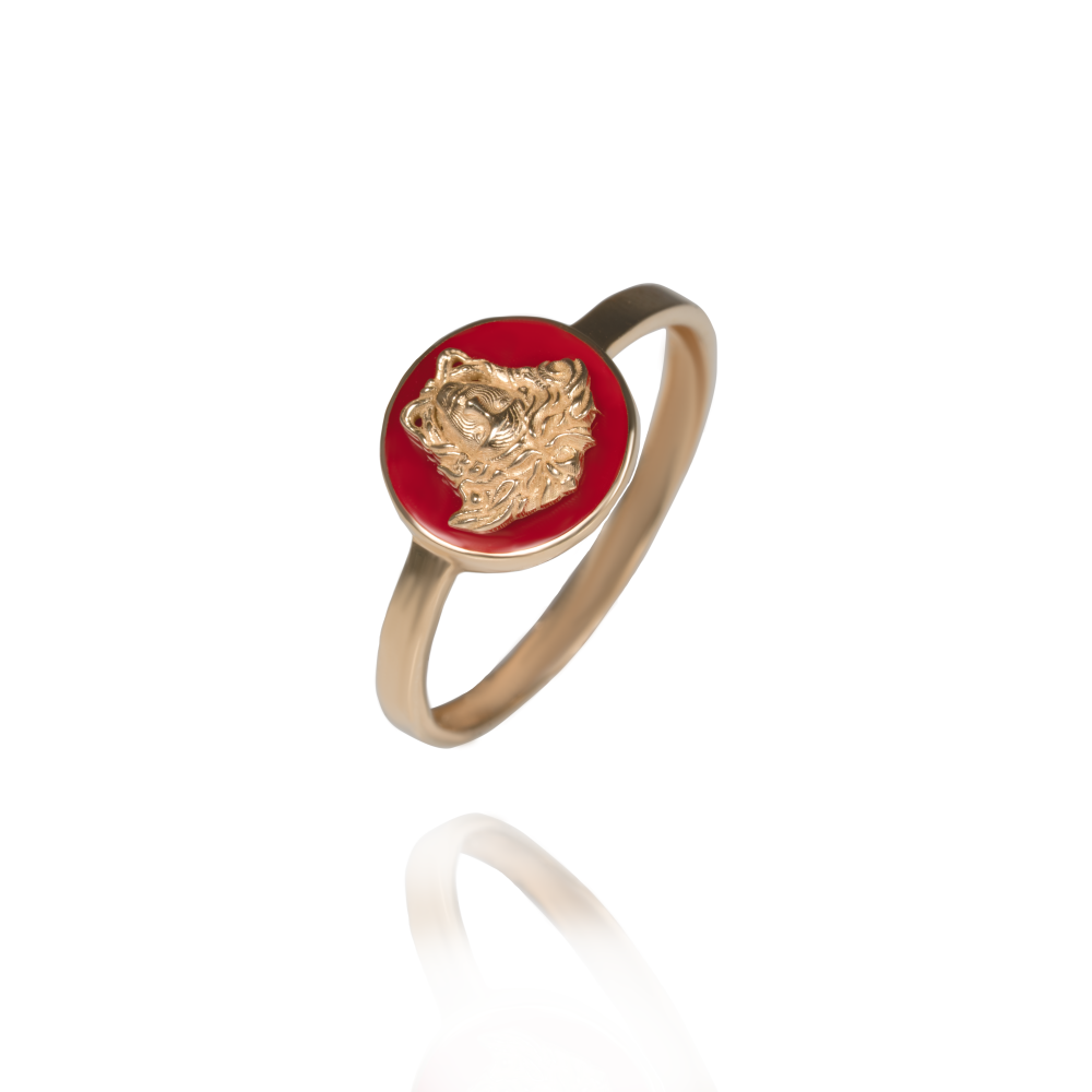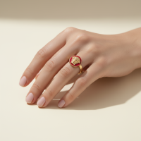 انگشتر طرح ورساچه با تصویر ظریف چهرهی زن، الهامگرفته از طراحیهای کلاسیک ایتالیاییه. ترکیب طلای درخشان با زمینهی قرمز براق، جلوهای از اصالت، جسارت و زیبایی زنانه رو نشون میده — مناسب برای کسی که استایلش خاص و اعتمادبهنفسش بینهایت جذابه. ❤️✨